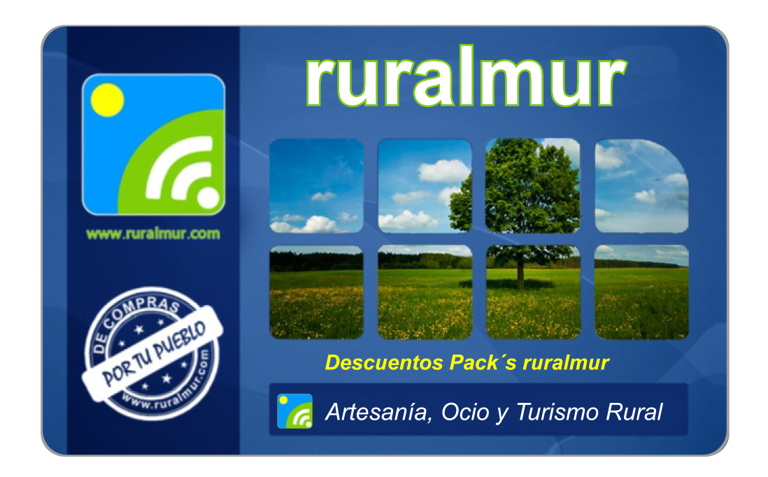 También ofrecemos nuestra Tarjeta Ruralmur, que se creó con un objetivo muy claro: ayudar a los consumidores y a los comercios murcianos. ¡¡Se acabó el comprar cupones descuento por internet, sin fechas de caducidad, sin comisiones y su complejidad de uso!!. Para ello ofrecemos diversos descuentos en artesanía, gastronomía, aventura y alojamiento, para nuestros asociados de una forma muy sencilla: tan solo con enseñar su Tarjeta Ruralmur!!