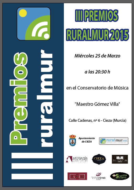 La gala de entrega de los III PREMIOS RURALMUR, será el miércoles día 25 de marzo a las 20:30 horas en Cieza.