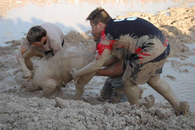 Ya en el lodazal, los esforzadas corren a buscar su correspondiente cerdo. Encima, solo disponen de un máximo de cuatro minutos para lograrlo, comprometiéndose en todo caso a no maltratar a los animales, uno de los motivos de descalificación. Durante este tiempo se producen momentos divertidos, y otros que no lo son tanto, pero que en ambos casos sirven para que los espectadores se involucren en la actividad.