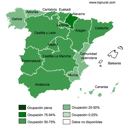 El nivel de ocupación de alojamientos rurales este puente del Pilar se sitúa en el 63%, lo que supone un incremento de 8 puntos respecto al de 2010 (en 2011 el día del Pilar cayó en miércoles).
